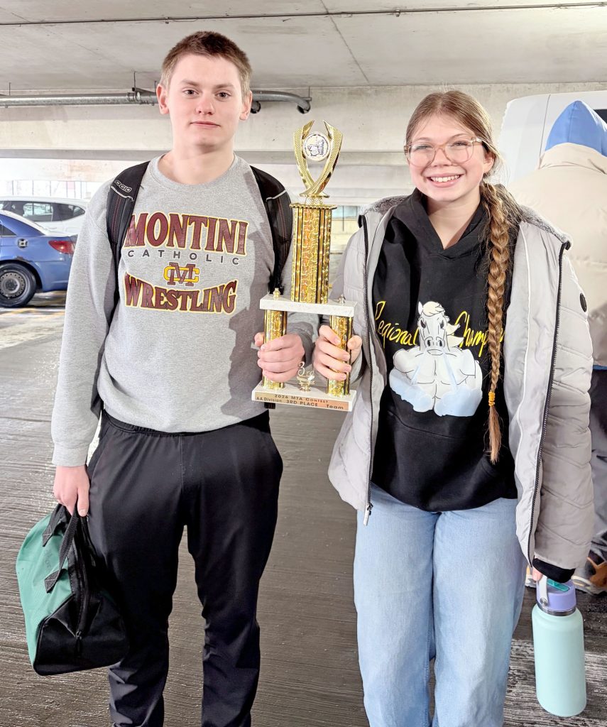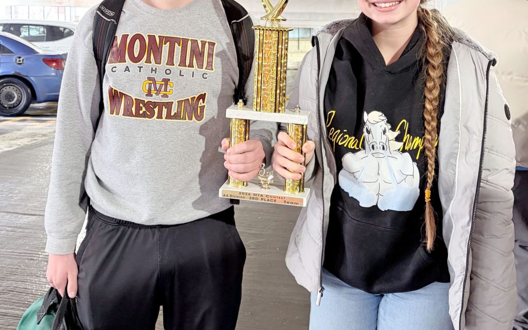 (Elmhurst Independent, Feb. 9) Montini Catholic High School’s math team members are enjoying their competition season, which leads up to the Illinois Council of Teachers of Mathematics (ICTM) state competition in April. The team recently competed at the Lemont Invitational (on Jan. 28), and at the Math Teachers Association (MTA) Invitational at Loyola University Chicago’s Lake Shore Campus (on Jan. 31). After claiming third-place honors at the Lemont Invitational, Montini’s math team delivered another third-place performance at the MTA Invitational. Pictured left to right after the MTA Invitational are two members of the team—sophomores Andrew Hemmersmeier of Elmhurst and Kayli Gergen of Lombard.