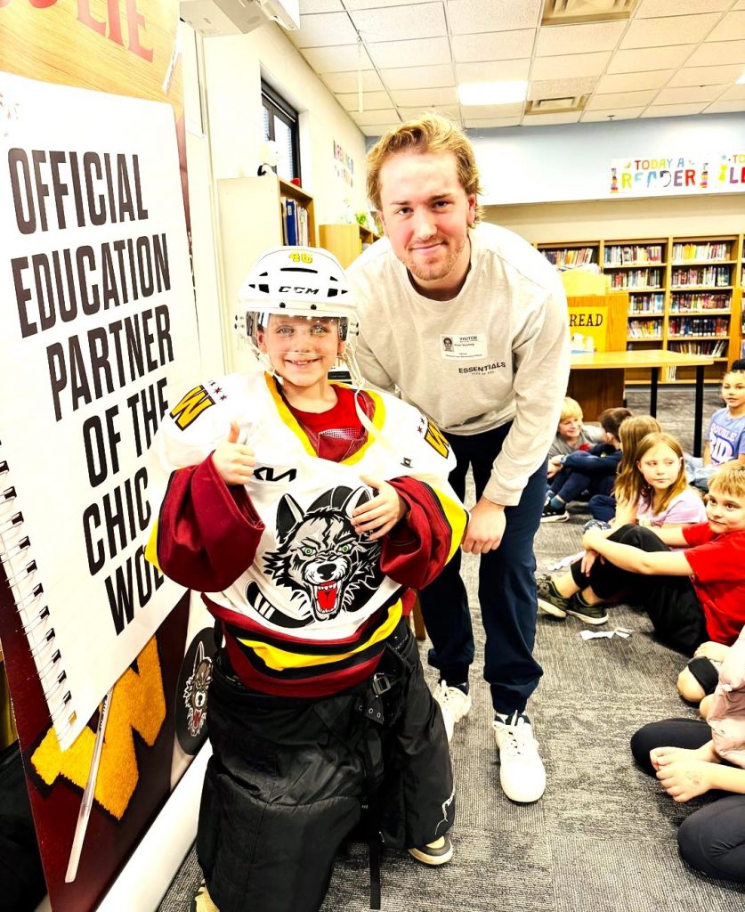 (Lombardian, Feb. 23) Last week, Chicago Wolves forward Evan Vierling visited second- and third-grade students at Pleasant Lane Elementary School in Lombard as part of the Wolves’ Read to Succeed initiative—a successful library-based program that has encouraged more than a million students to make reading a fundamental part of their days since 1996. Targeting students in kindergarten through eighth grade, the program serves as a reward and inspiration for students to excel at existing or new reading programs at school. Select Wolves players make appearances at area schools to participate, interact and read with students.